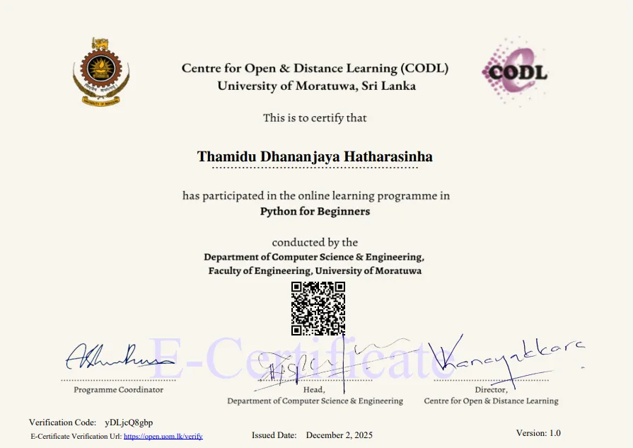 I'm Thamidu Dhananjaya Hatharasinha, a dedicated Full Stack Developer sharpening my skills at the University of Moratuwa. My technical training encourages me to think deeply about systems, performance, and security. I aim to do more than just write code. I want to understand the infrastructure that supports it. I enjoy turning requirements into strong architecture and clean interfaces that make ideas feel effortless.
